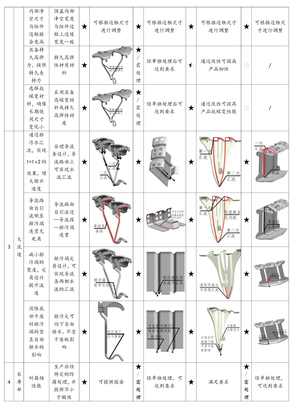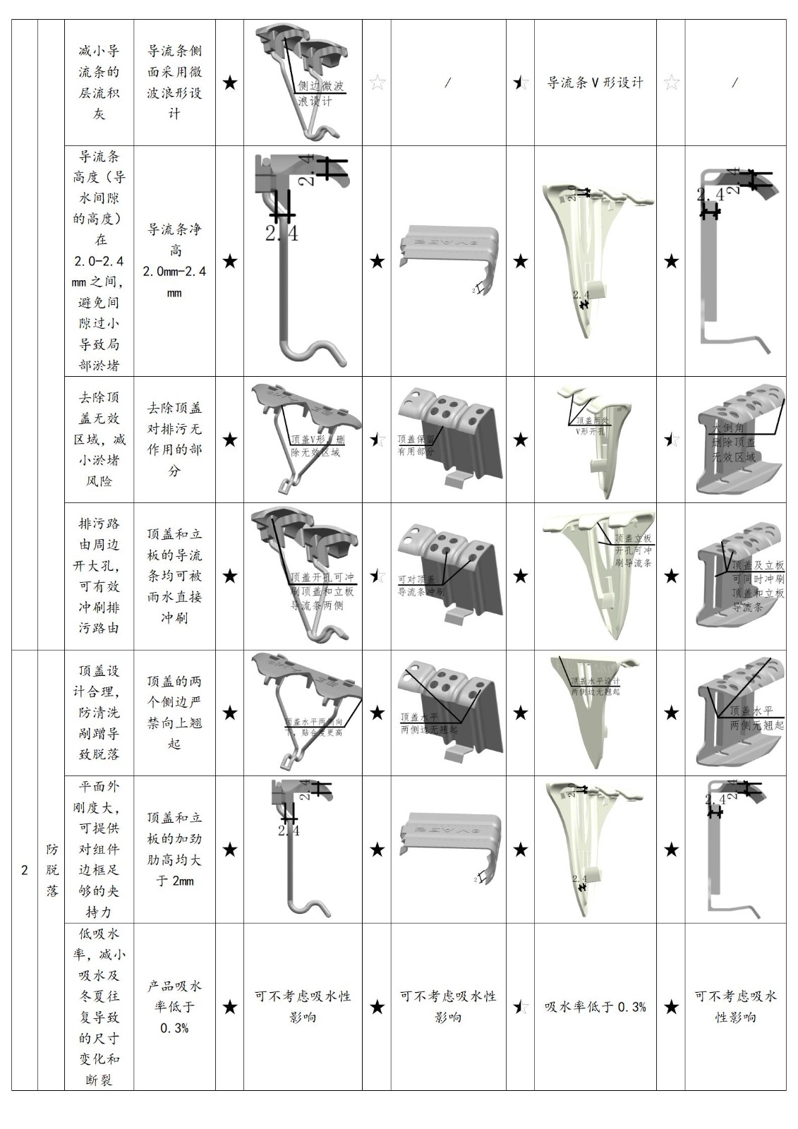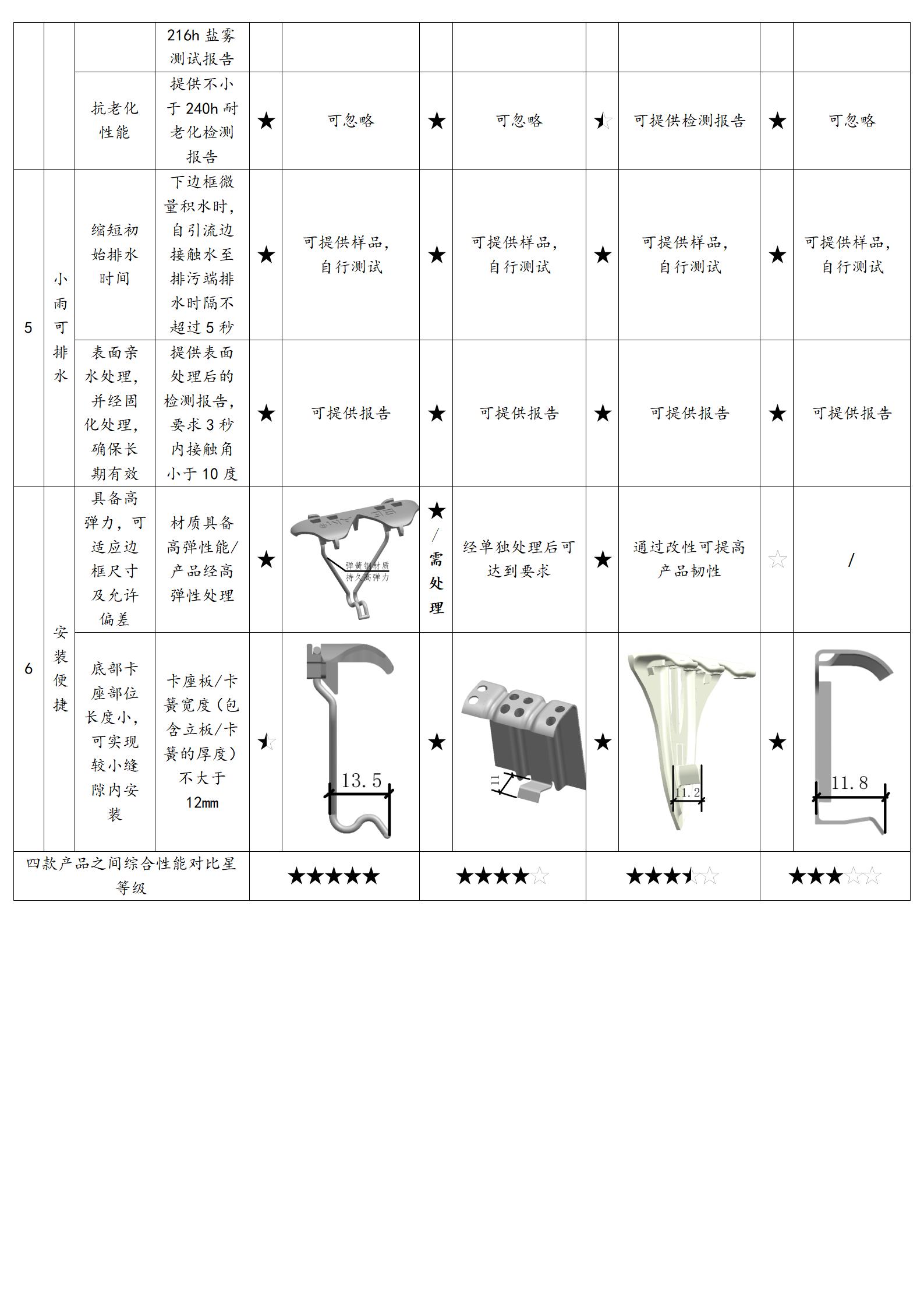 SEAM®光伏板导水夹/导水排泥夹/排水倒泥夹 性能要求技术参数汇总表